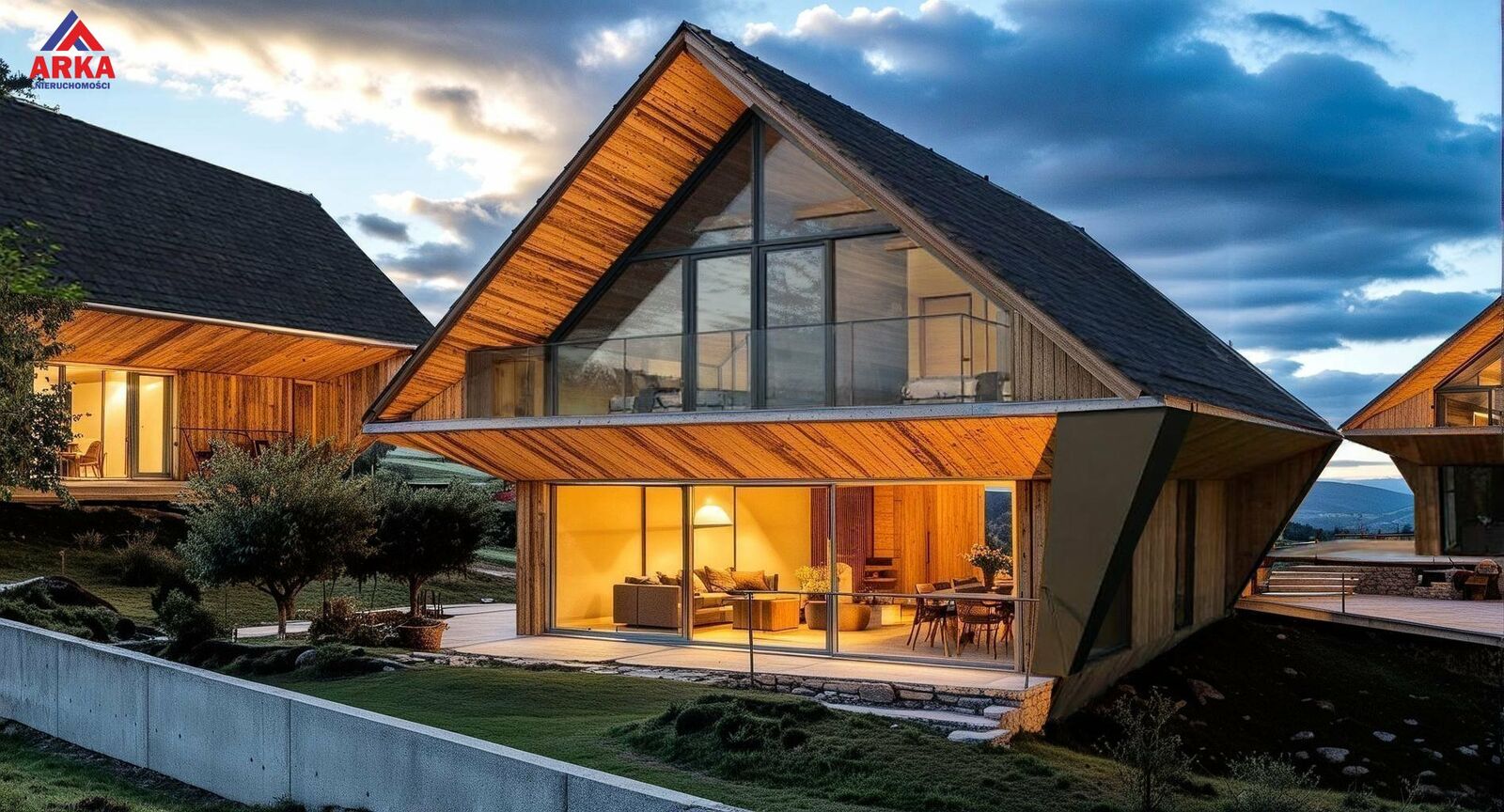 Największy budynek zaprojektowano jako obiekt apartamentowy z trzema niezależnymi lokalami oraz częścią biurową, natomiast dwa mniejsze domy mają funkcjonalny układ idealny zarówno pod wynajem, jak i użytkowanie prywatne (z częścią dzienną, strefą relaksu, w tym sauną, oraz wygodną częścią sypialnianą na poddaszu).